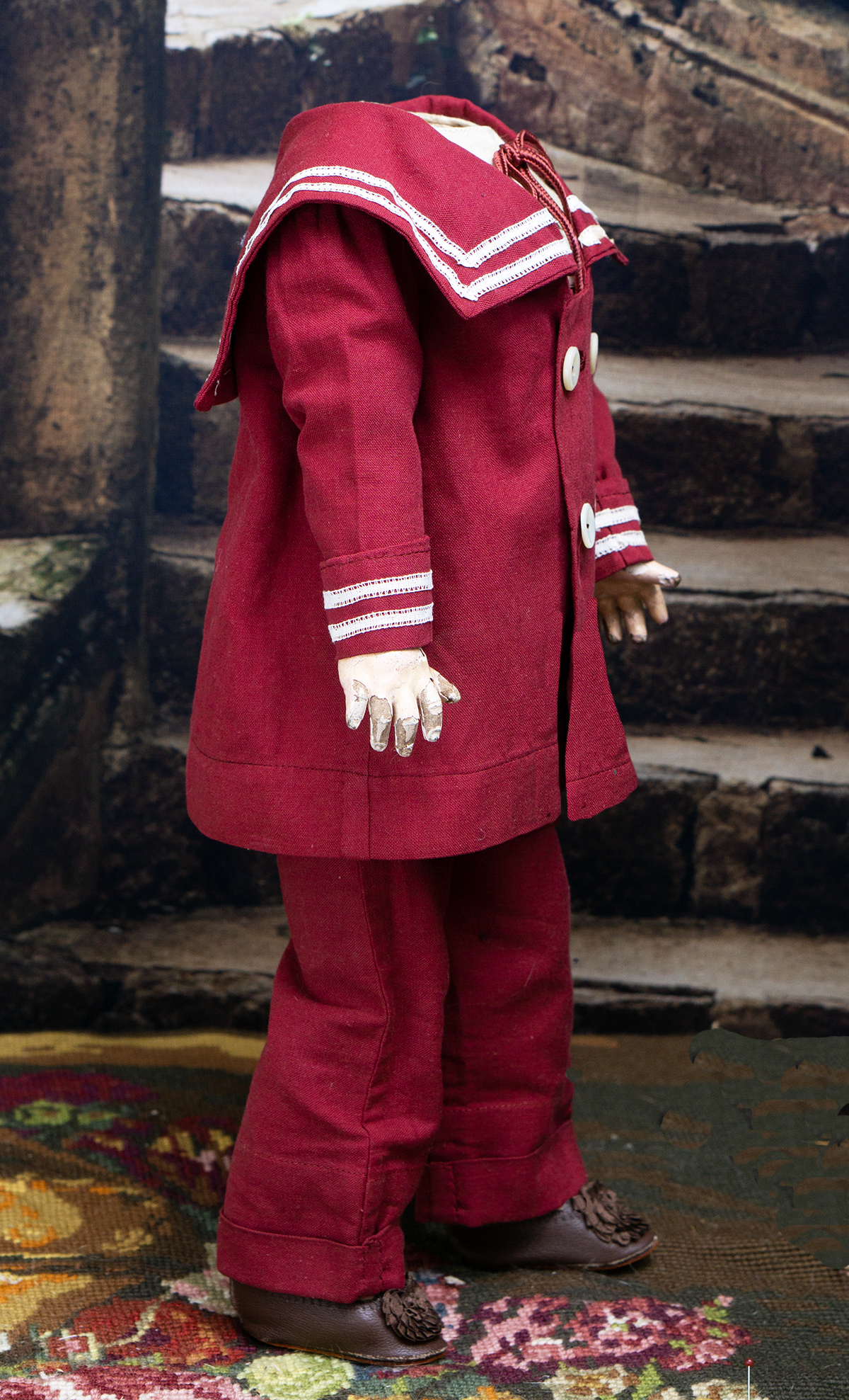 Very good condition. French, circa 1900. Measures The jacket 8 1/2" (22cm) length, 16" (41cm) wide, 5" (13cm) sleeve, 6" (15cm) shoulders. The pantalon 10 1/2" (27cm) length, 11" (28cm) waist. Fit for doll about 18-19 (45-49cm) International shipping cost $25.00 ------------------------------------ I DO A LAYAWAY NO STATE SALES TAX! Thanks for your visit to Respectfulbear doll shop!