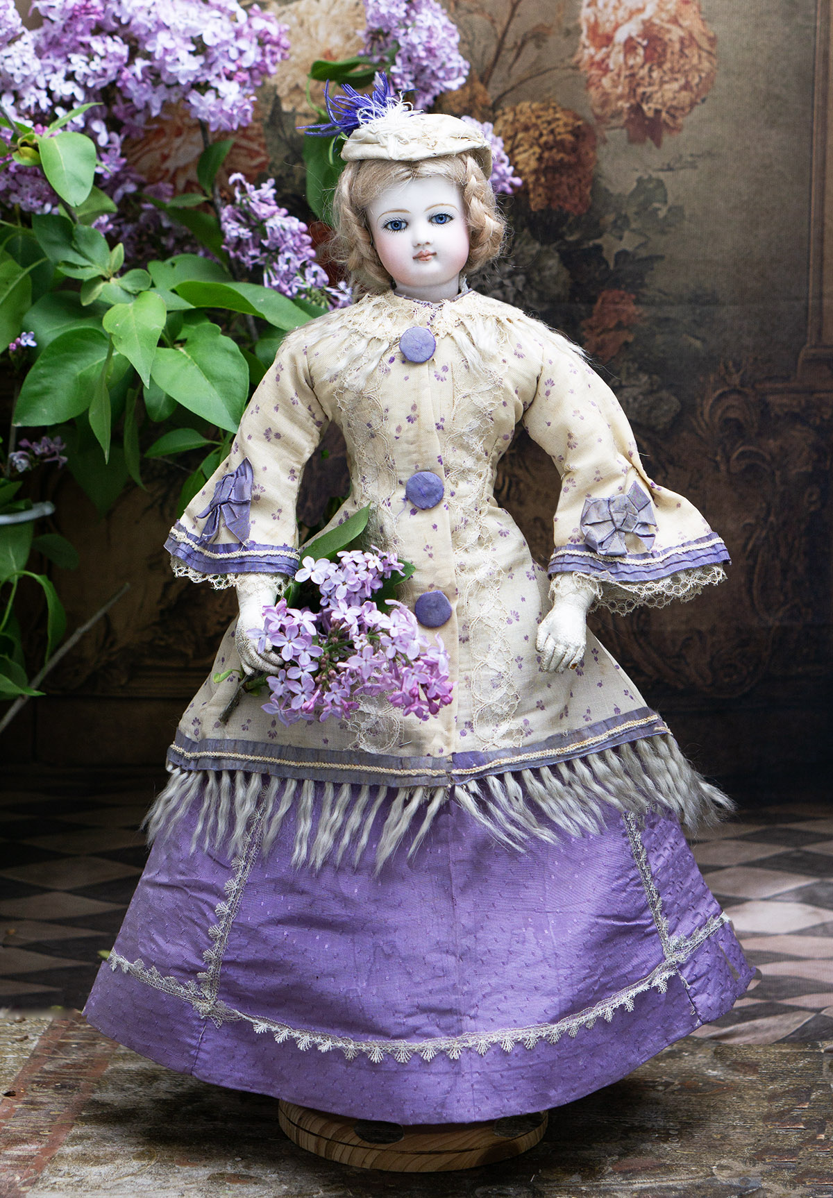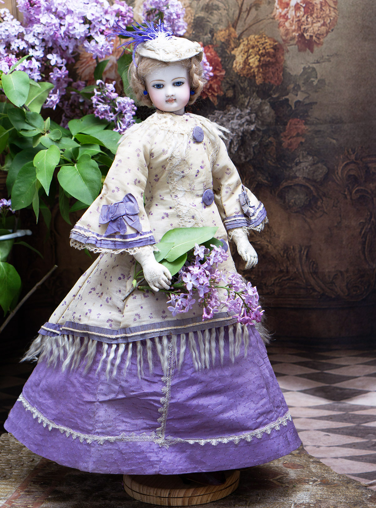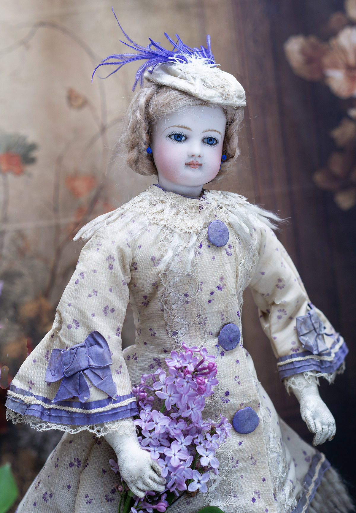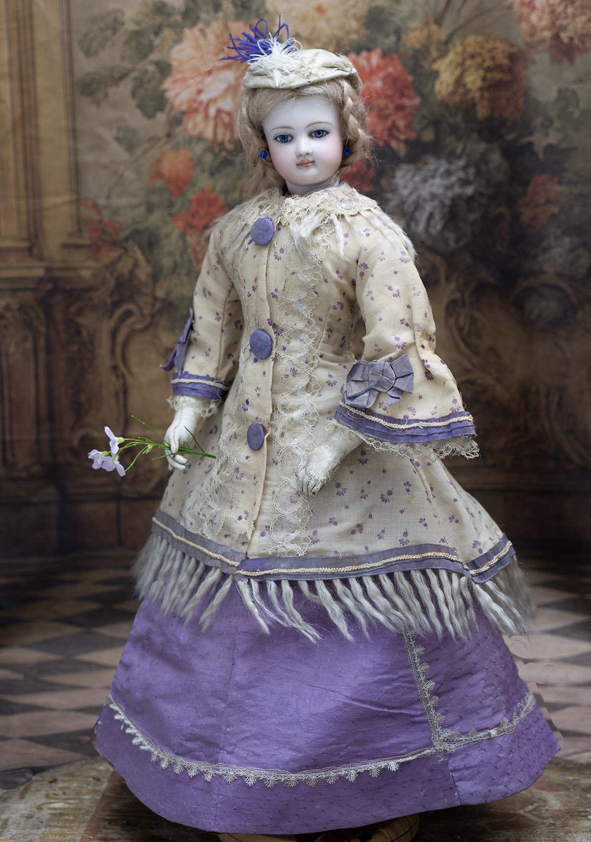 Condition: generally excellent, her bisque free of hairline, restoration, any damages, the bosy in excellent condition. Marks: 4. French, circa 1870, attributed to Pierre-Francois Jumeau. The lady wearing beautiful original two pieces gown and hat, antique original undergarments, earrings, fancy vintage leather boots. 18" (46 cm.)tall Intrenational shipping cost $65.00 ------------------------------------ I DO A LAYAWAY NO STATE SALES TAX! Thanks for your visit to Respectfulbear doll shop!
