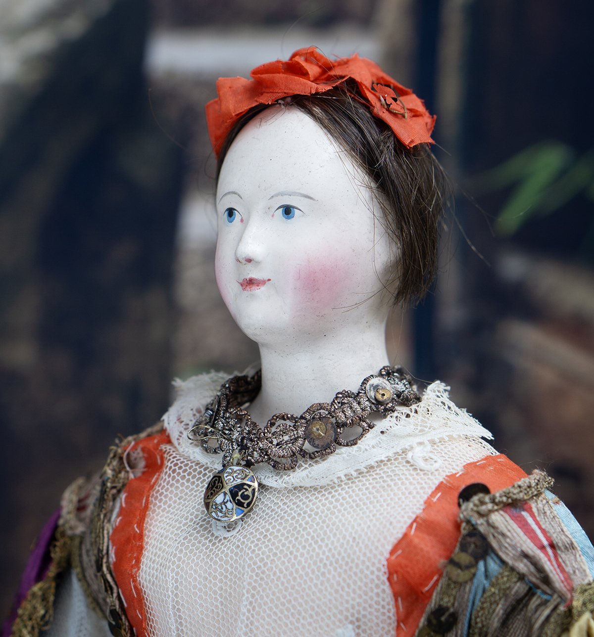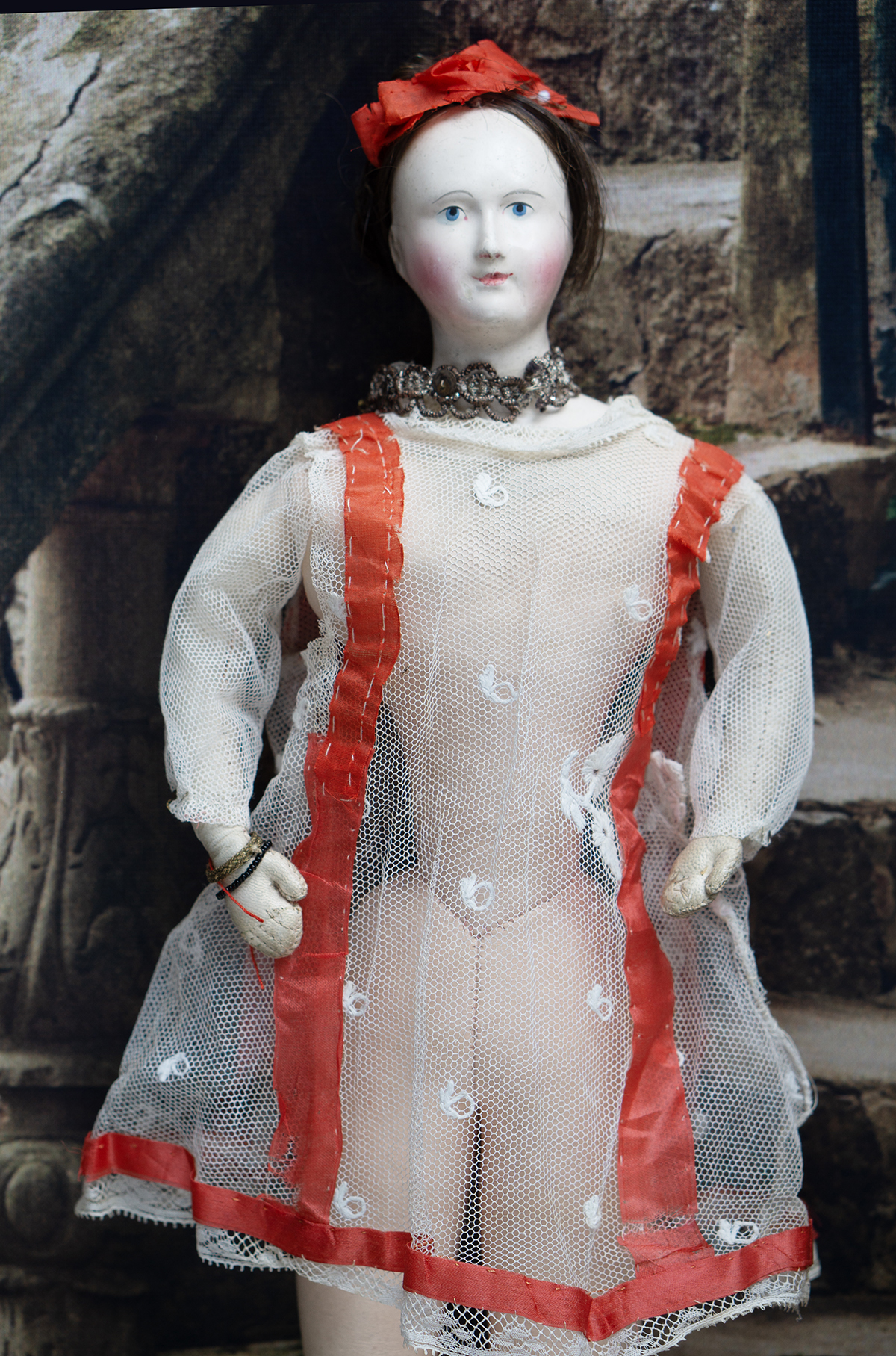 The doll wears her original silk Turkish costume. Rare early doll and costume in flawlessly-preserved original condition,with beautiful face and painting. 15" (38cm) tall Condition: generally excellent. French, circa 1850. International shipping cost $45.00. ------------------------------------ I DO A LAYAWAY NO STATE SALES TAX! Thanks for your visit to Respectfulbear doll shop!