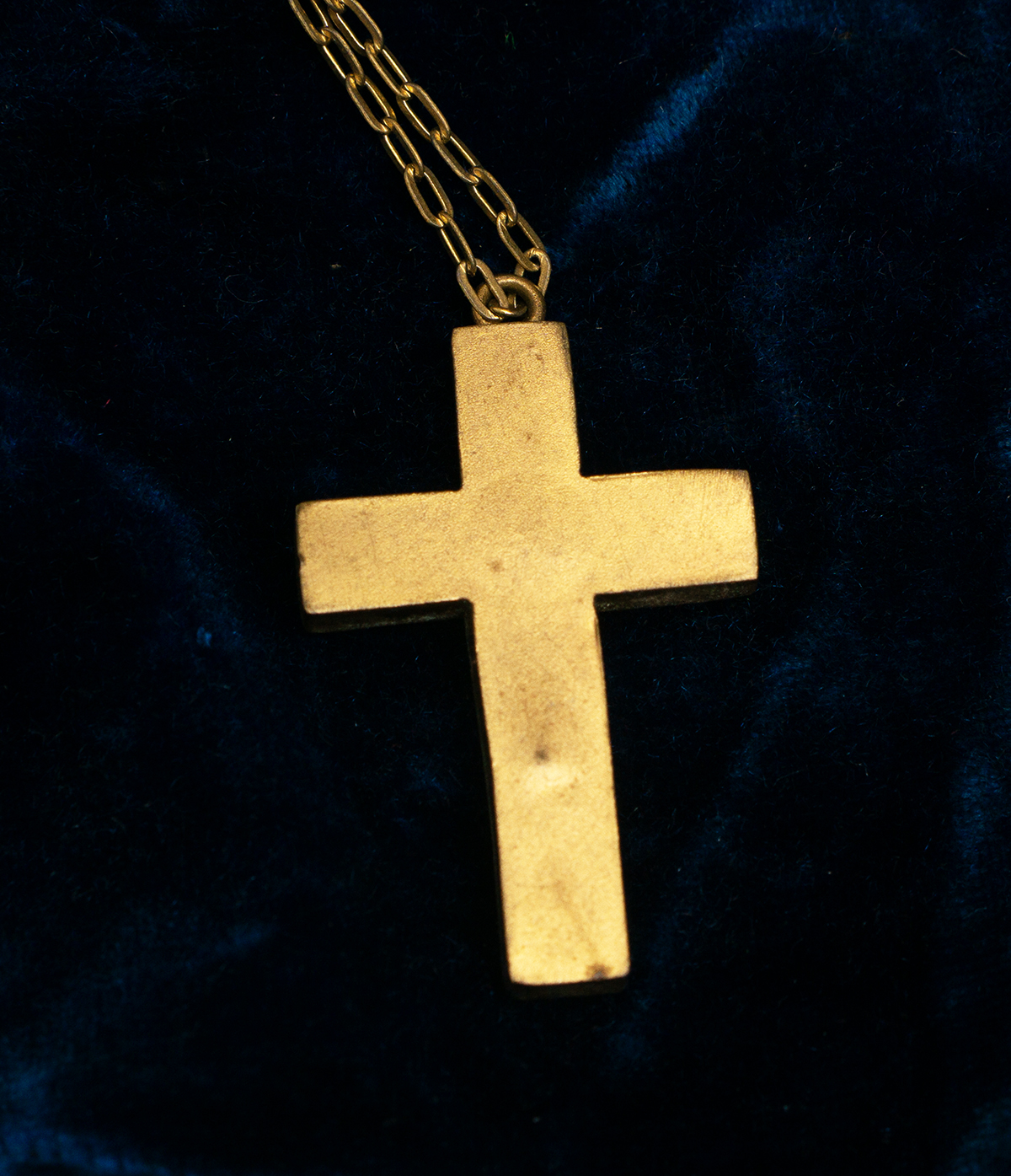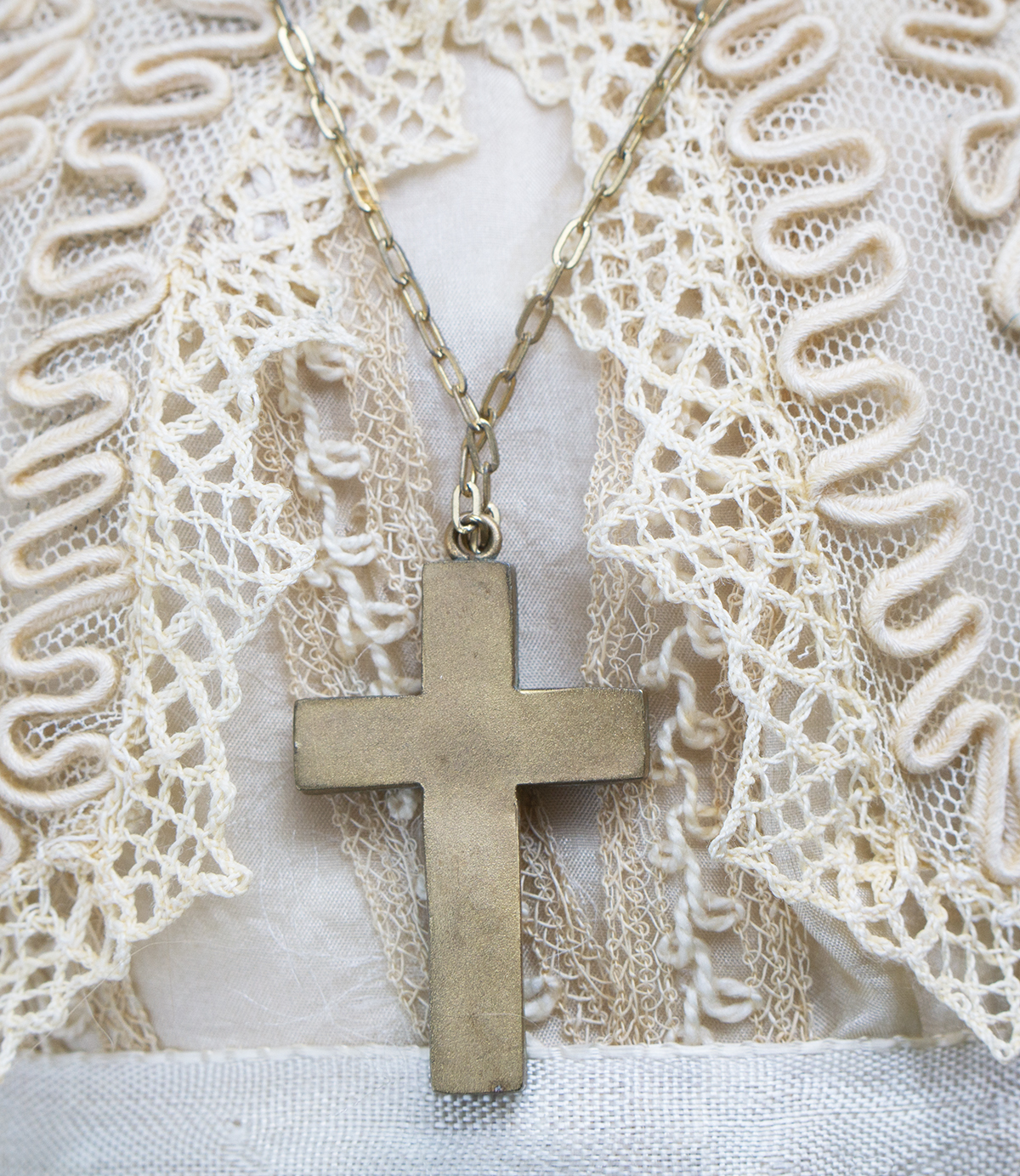 Very good condition. Measures the cross 1 1/2"(4cm) tall and 7 1/2 (19cm) length including chine the box 2" (5cm) wide International shipping cost $18.00 ------------------------------------ I DO A LAYAWAY NO STATE SALES TAX! Thanks for your visit to Respectfulbear doll shop!