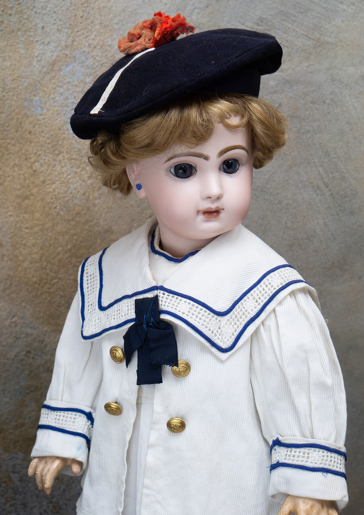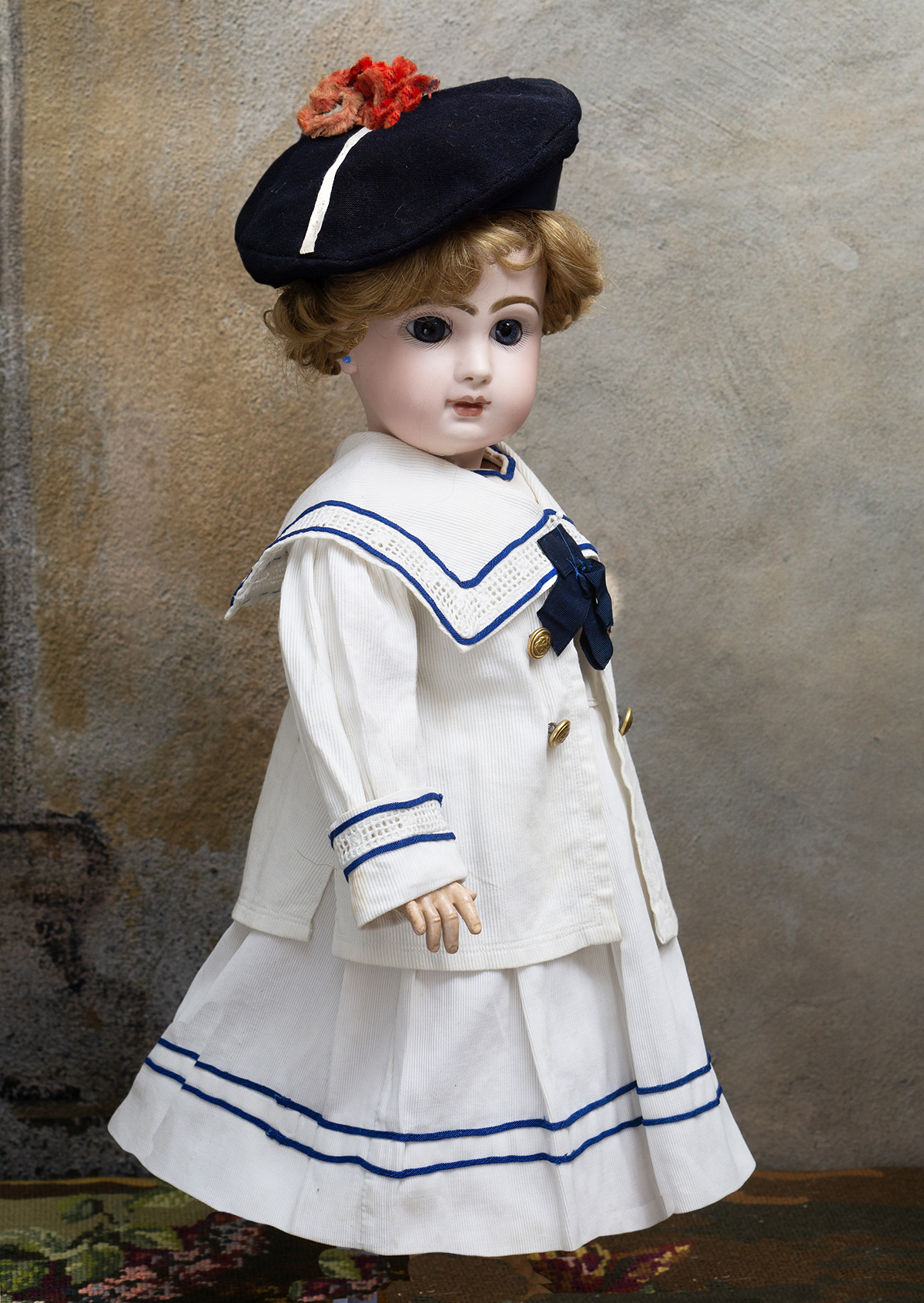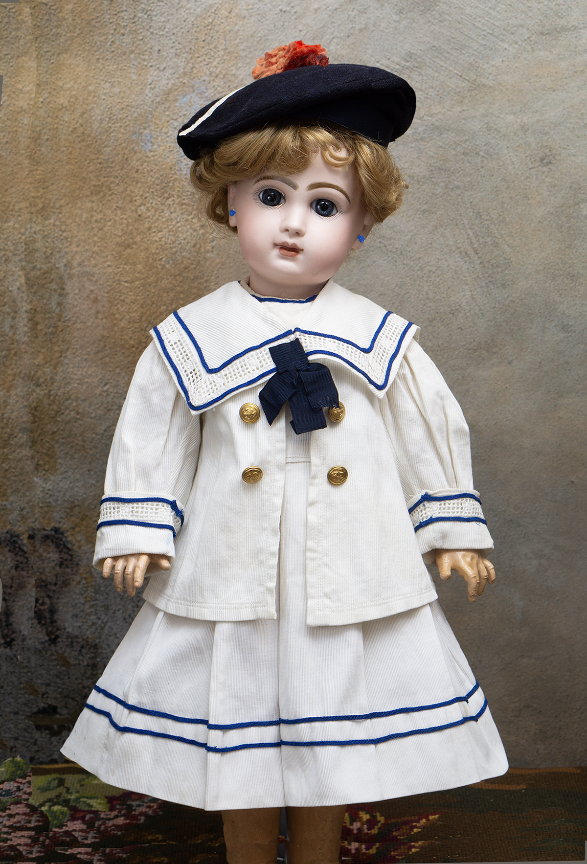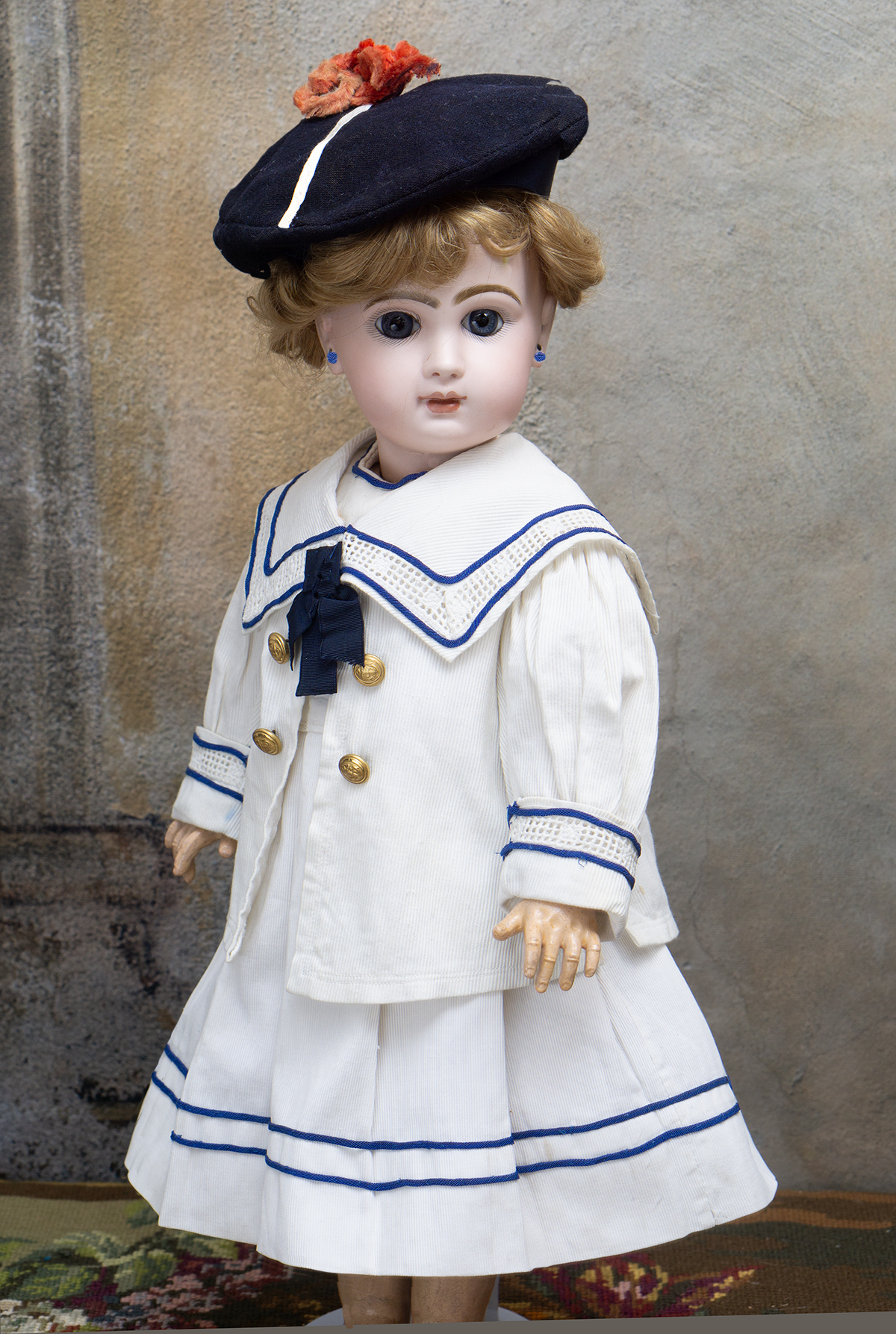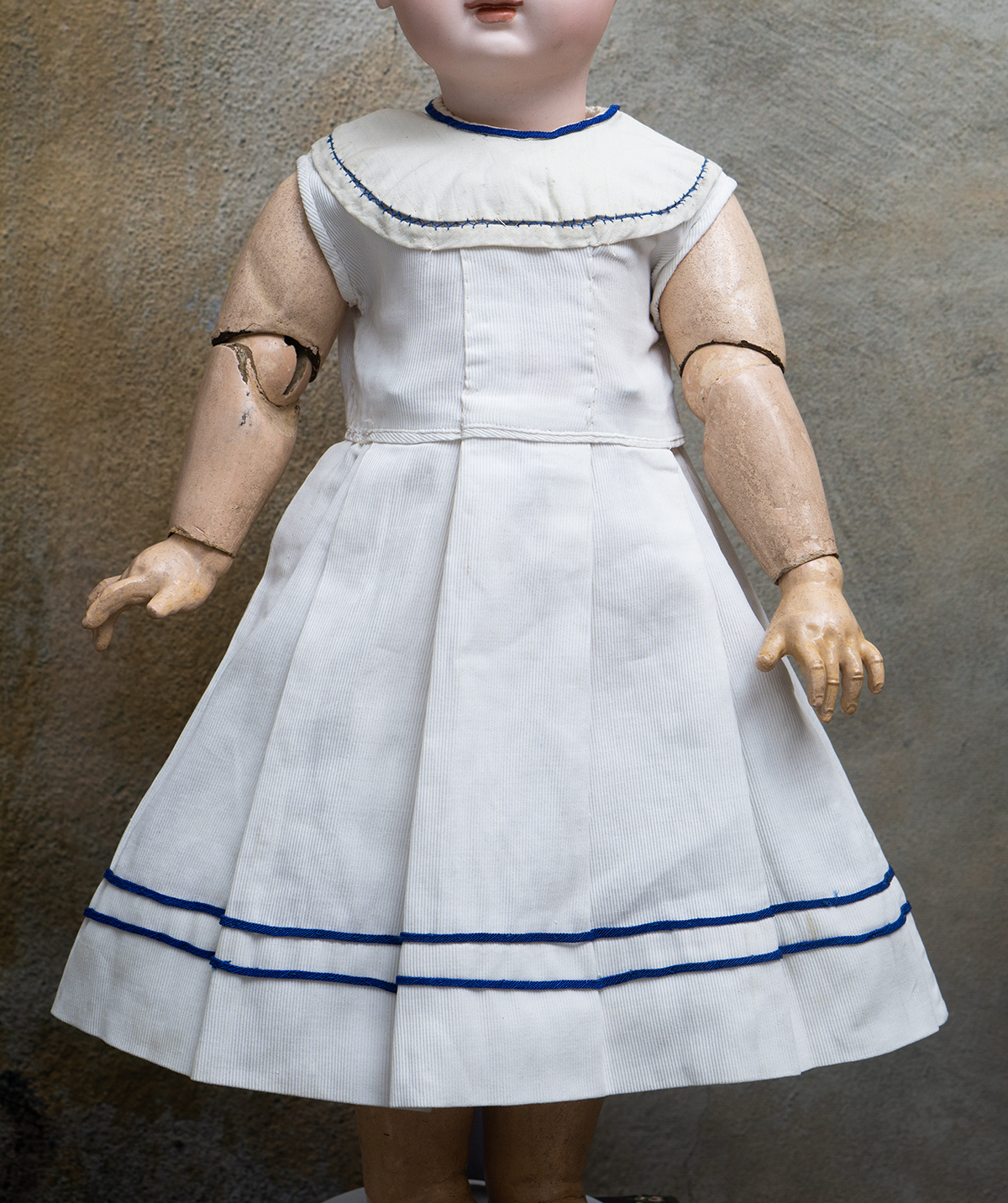 Very good condition to age. French, circa 1890. Fit for french bebe doll about 20-21" (50-53cm) Measures The jacket 8 1/2" (22cm) length, 6" (16cm) shoulders, 6" (16cm) sleeve. the dress 13" (34cm) length, 12 1/2" (32cm) waist, 6 1/2" (17cm) shoulders. The cap 4 1/2" (12cm) wide inside and 14" (36cm) circumference. International shipping cost by UPS $55.00 ------------------------------------ I DO A LAYAWAY NO STATE SALES TAX! Thanks for your visit to Respectfulbear doll shop!