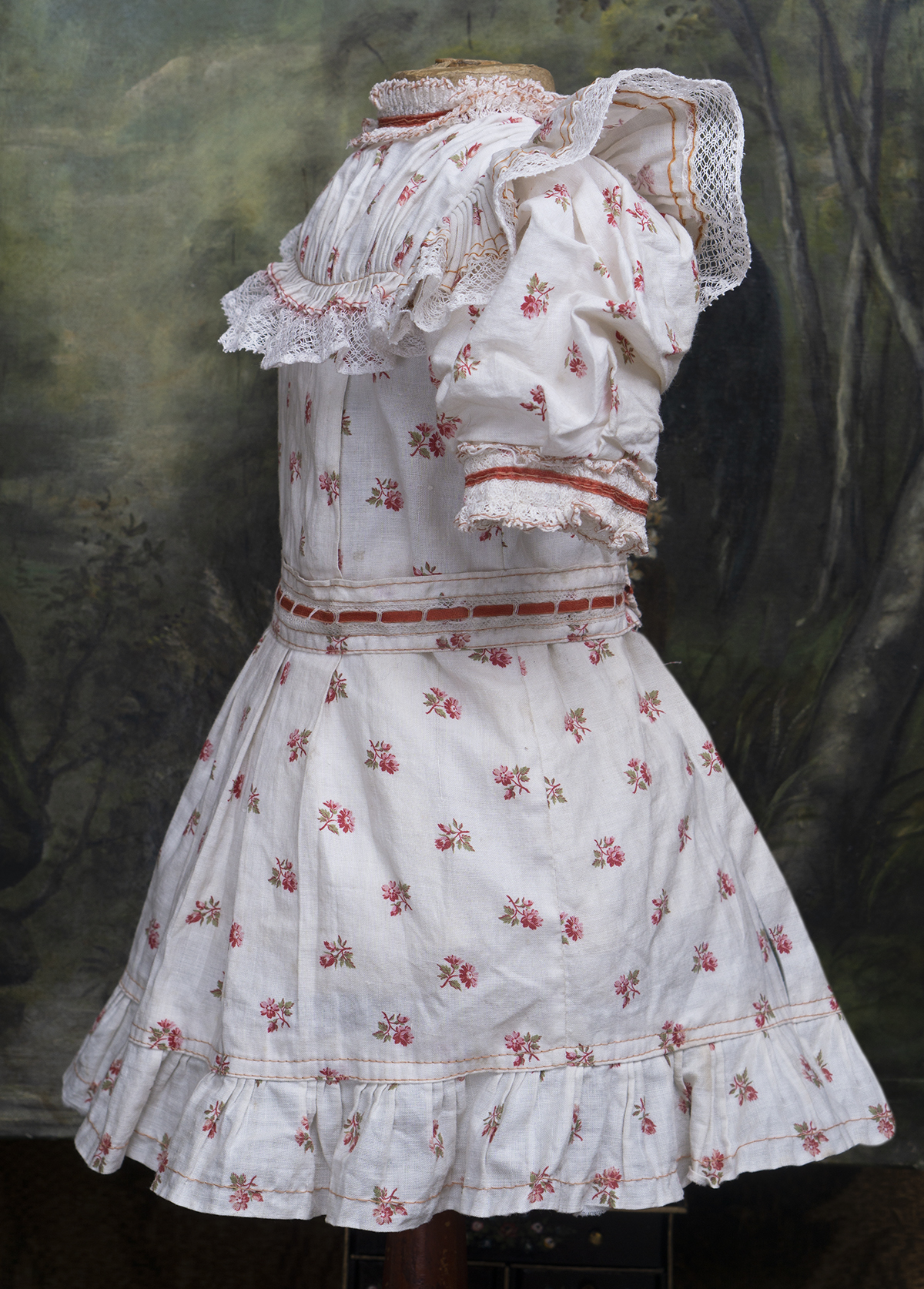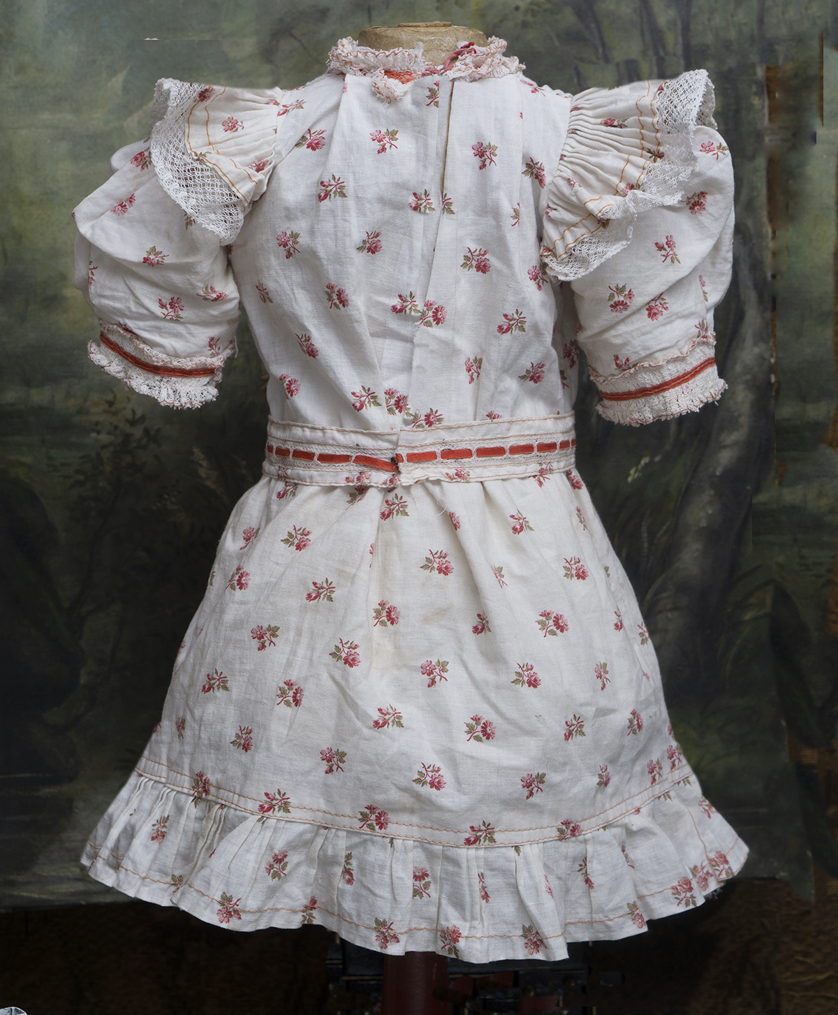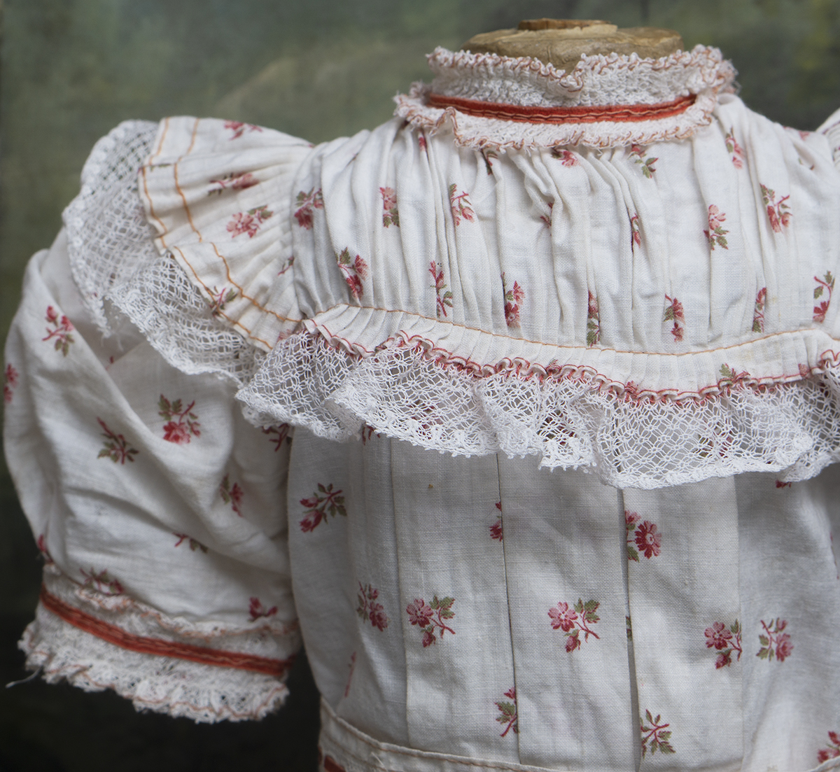 Closure at the back with hook and eye. EXCELLENT CONDITION! Fit for Jumeau bebe size 11. Measures 15"(38 cm) length, 6" (15 cm) sleeve, 6" (15 cm) shoulders, 15" (38 cm) chest. For doll about 25" (64 cm.) tall ------------------- I DO A LAYAWAY. Please email me if you have any questions. Thanks for looking. ------------------------------------ I DO A LAYAWAY NO STATE SALES TAX! Thanks for your visit to Respectfulbear doll shop!