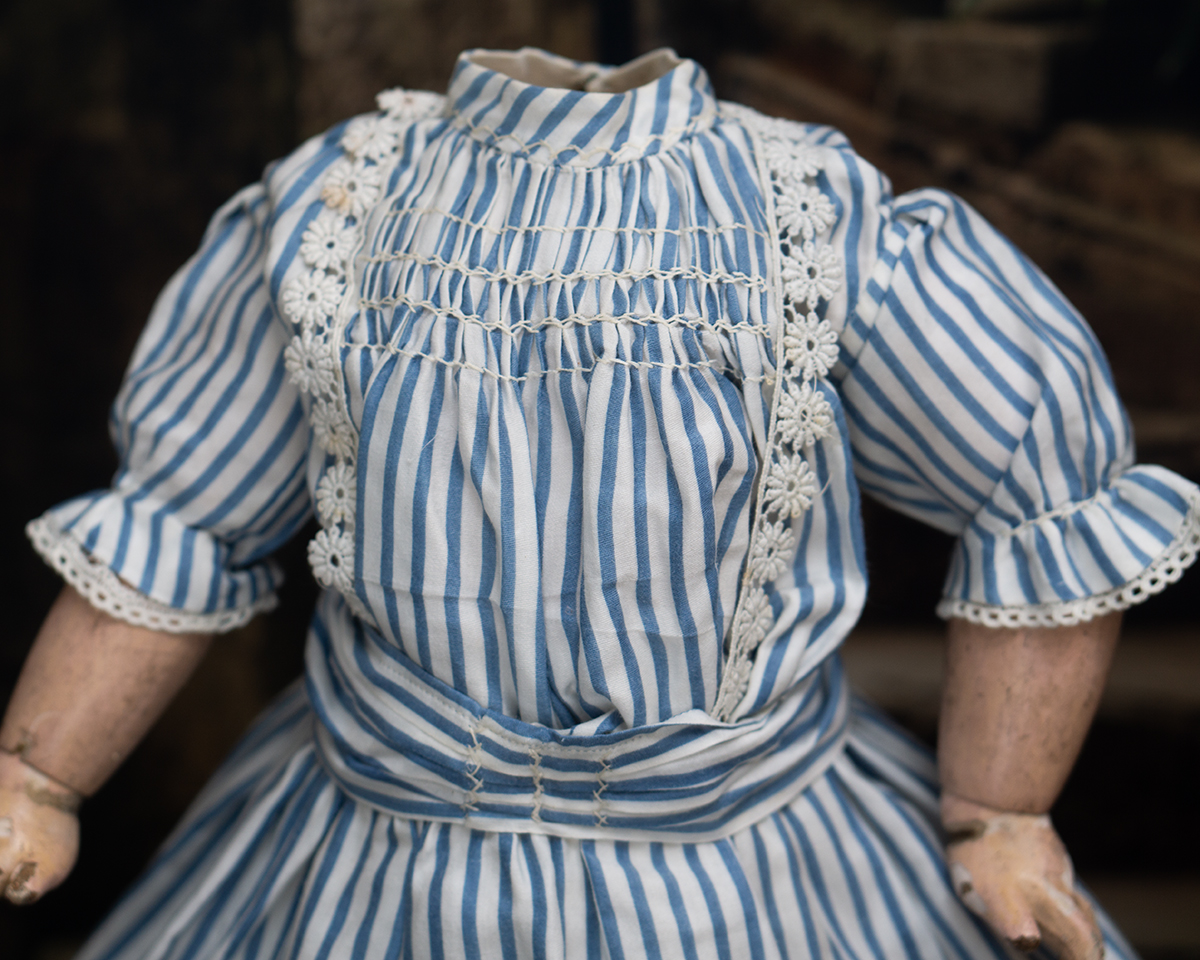 Antique french original cotton dress for Jumeau Bru Steiner Eden bebe doll 21-22" (53-56cm)