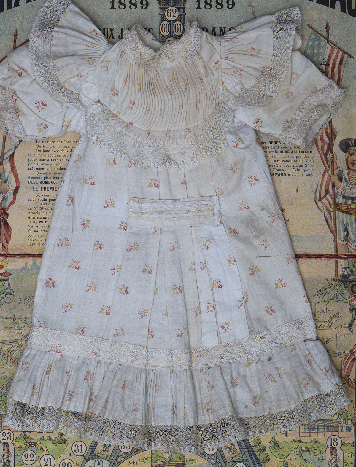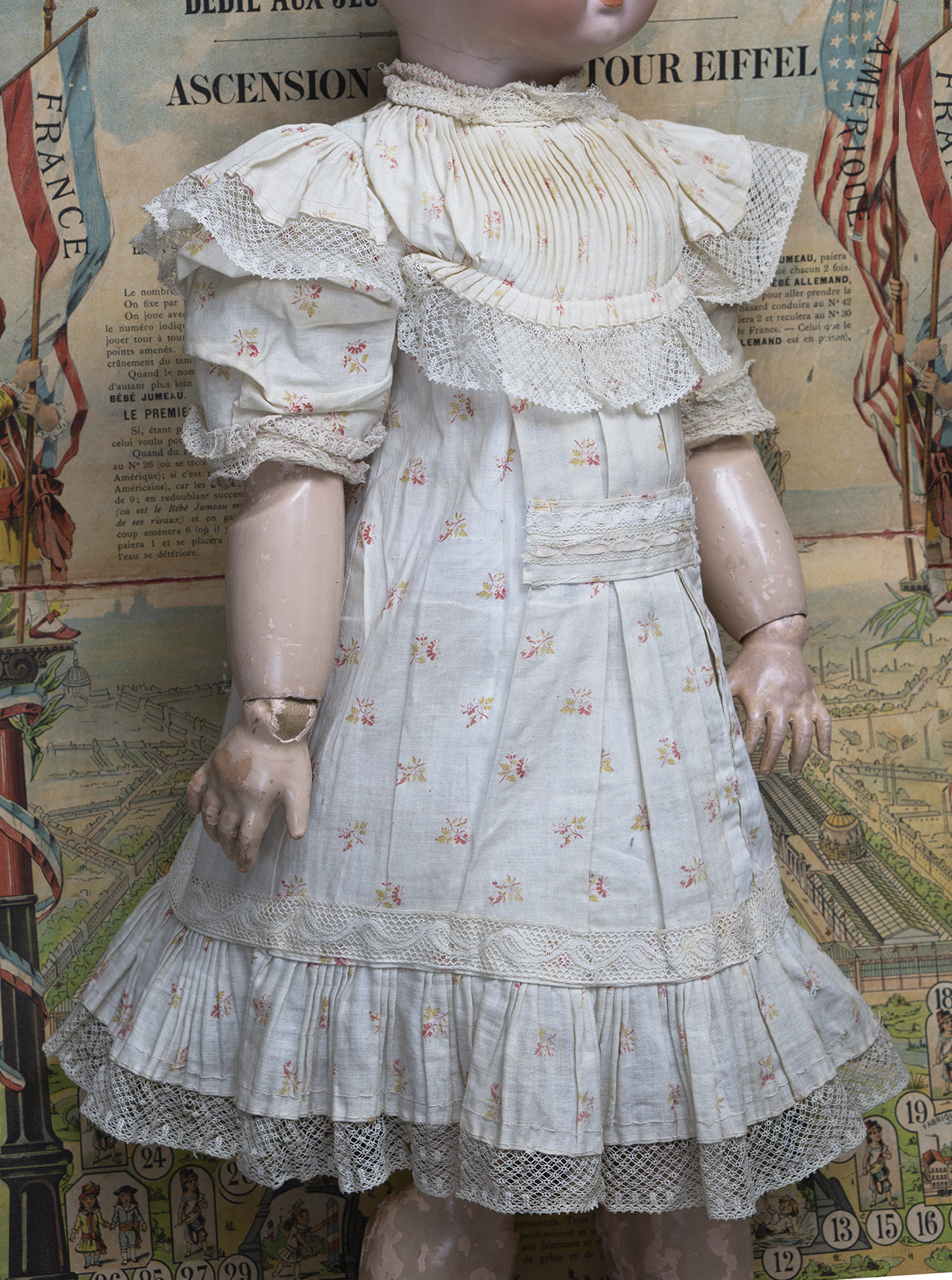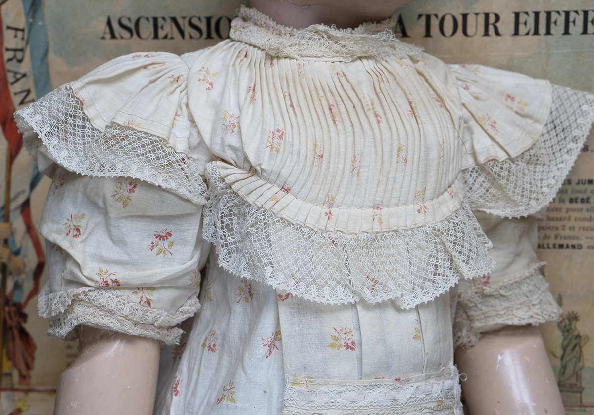 Good condition, some worn because age. Measures: Length 15 1/2" (39cm) , chest circumference 16" (40cm) cm, shoulders 6" (15cm), sleeve 5" (13cm). Fit for Jumeau Bebe doll about 25-26": tall (62-66cm). The doll modeling Jumeau size 12, 26" tall (she is not for sale). ------------------------------------ I DO A LAYAWAY NO STATE SALES TAX! Thanks for your visit to Respectfulbear doll shop!