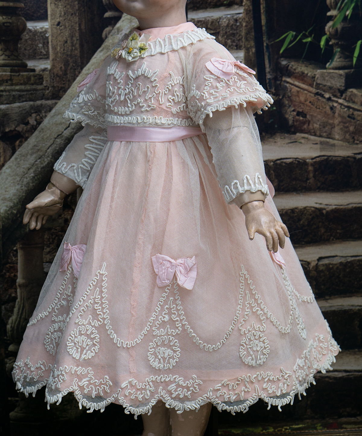 The dress has light pink batiste underdress. Measures 17" (43cm) length, 7 1/2" (19cm) shoulders, 15" (38cm) waist, 6" (15cm) sleeve. Fit for french bebe 25-26" tall )62-65cm). ------------------------------------ I DO A LAYAWAY NO STATE SALES TAX! Thanks for your visit to Respectfulbear doll shop!