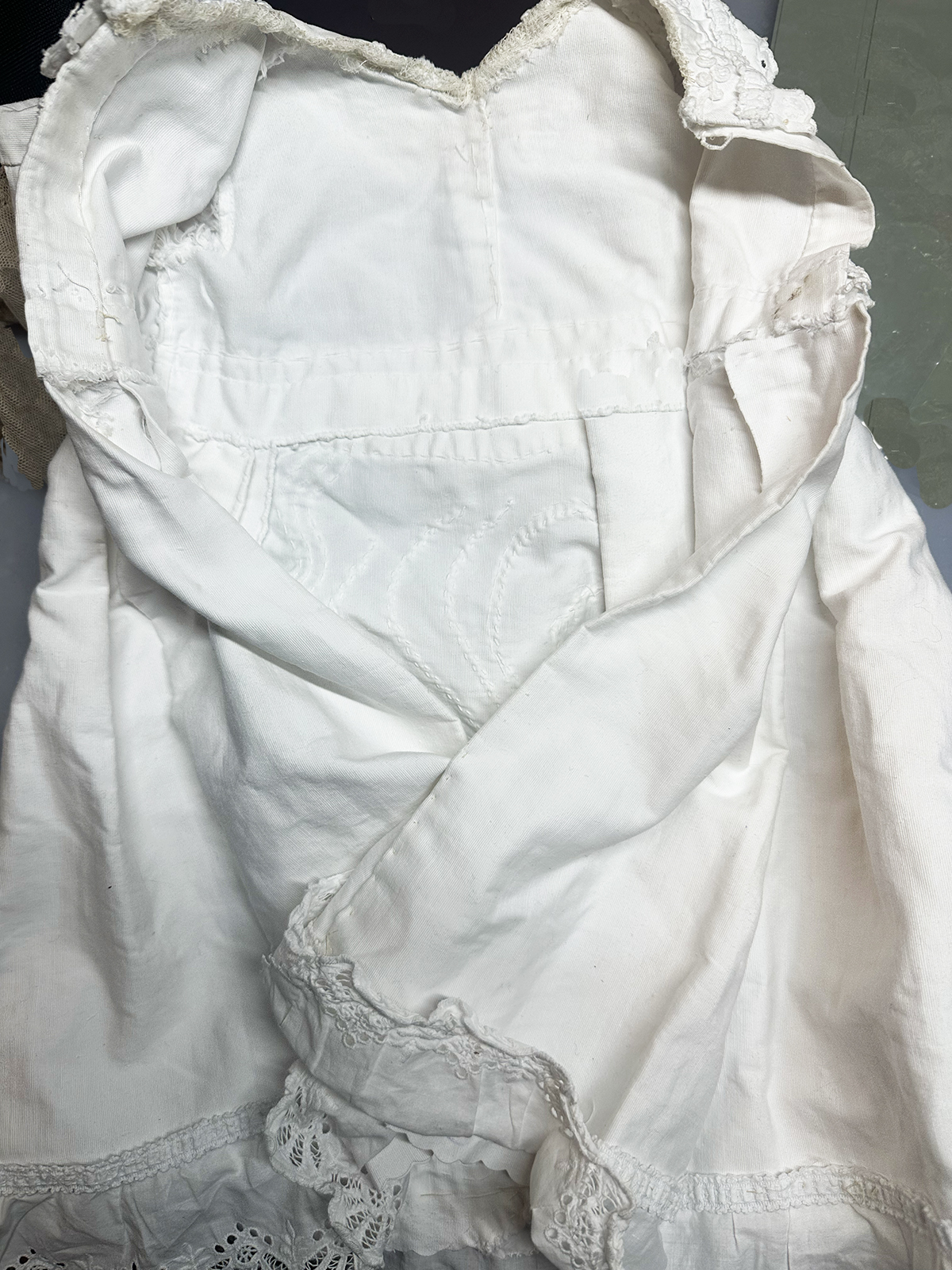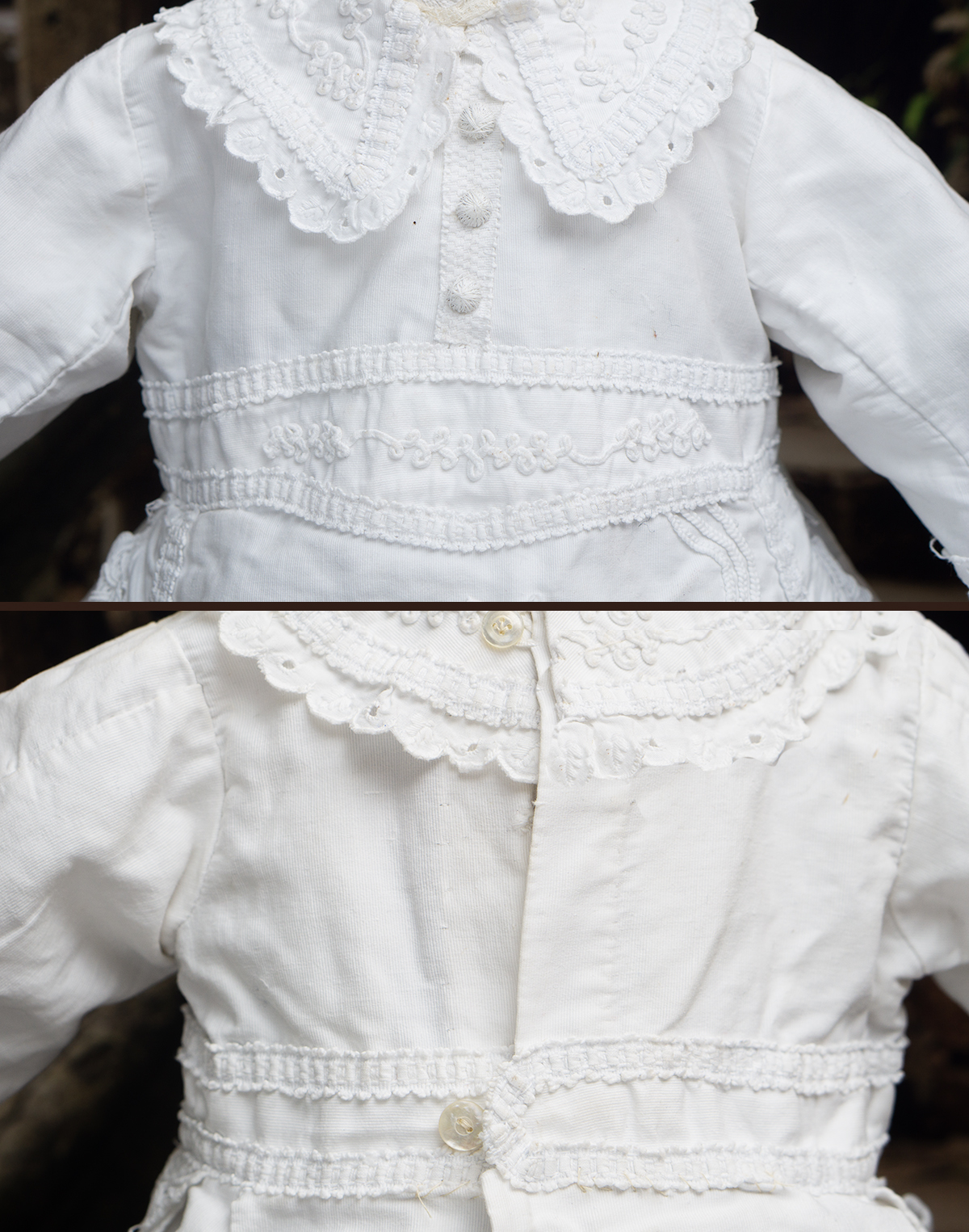 Excellent condition! France, c.1870. Measures 18" (46cm) length, 7 1/2" (19cm) sleeve, 7 1/2" (19cm) shoulders, 18" (45cm) chest. Fit for bebe doll about 26-27" tall. International shipping cost $45.00 ------------------------------------ I DO A LAYAWAY NO STATE SALES TAX! Thanks for your visit to Respectfulbear doll shop!