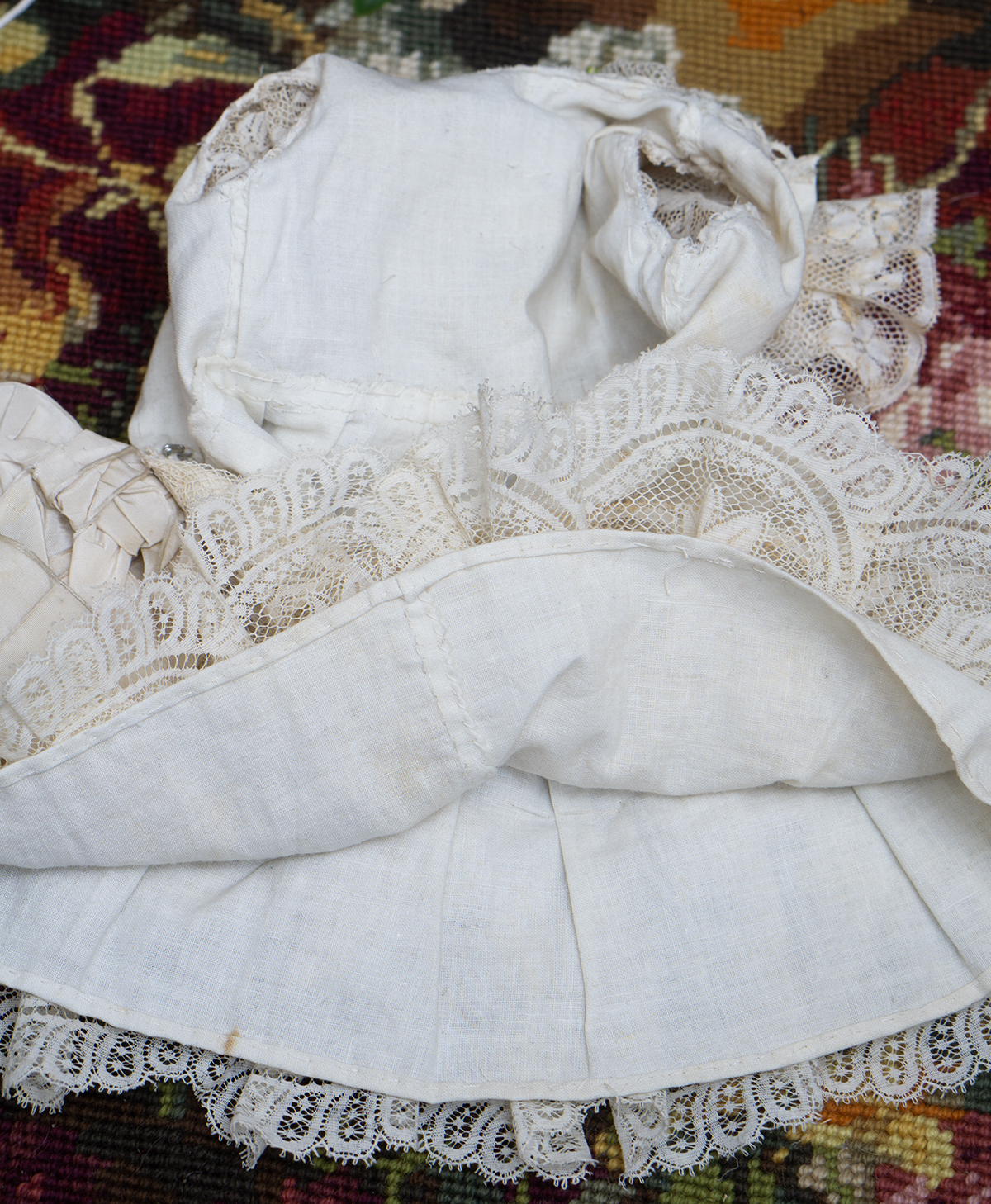 Good condition to age. THE MATCHING BONNET ON~ THE LAST PHOTO IS NOT INCLUDING! BUT THIS IS FOR SALE SEPARATELY Please look HERE Measures 10" (25 cm) height, 4" (10cm) sleeve, 9" (23 cm) waist, 4 1/2" (11 cm) shoulders width. For bebe for doll about 15-16" tall (38-41cm) International shipping cost bu UPS $56.00 NO extra duties or taxes on delivery (UPS DDP). ------------------------------------ I DO A LAYAWAY NO STATE SALES TAX! Thanks for your visit to Respectfulbear doll shop!