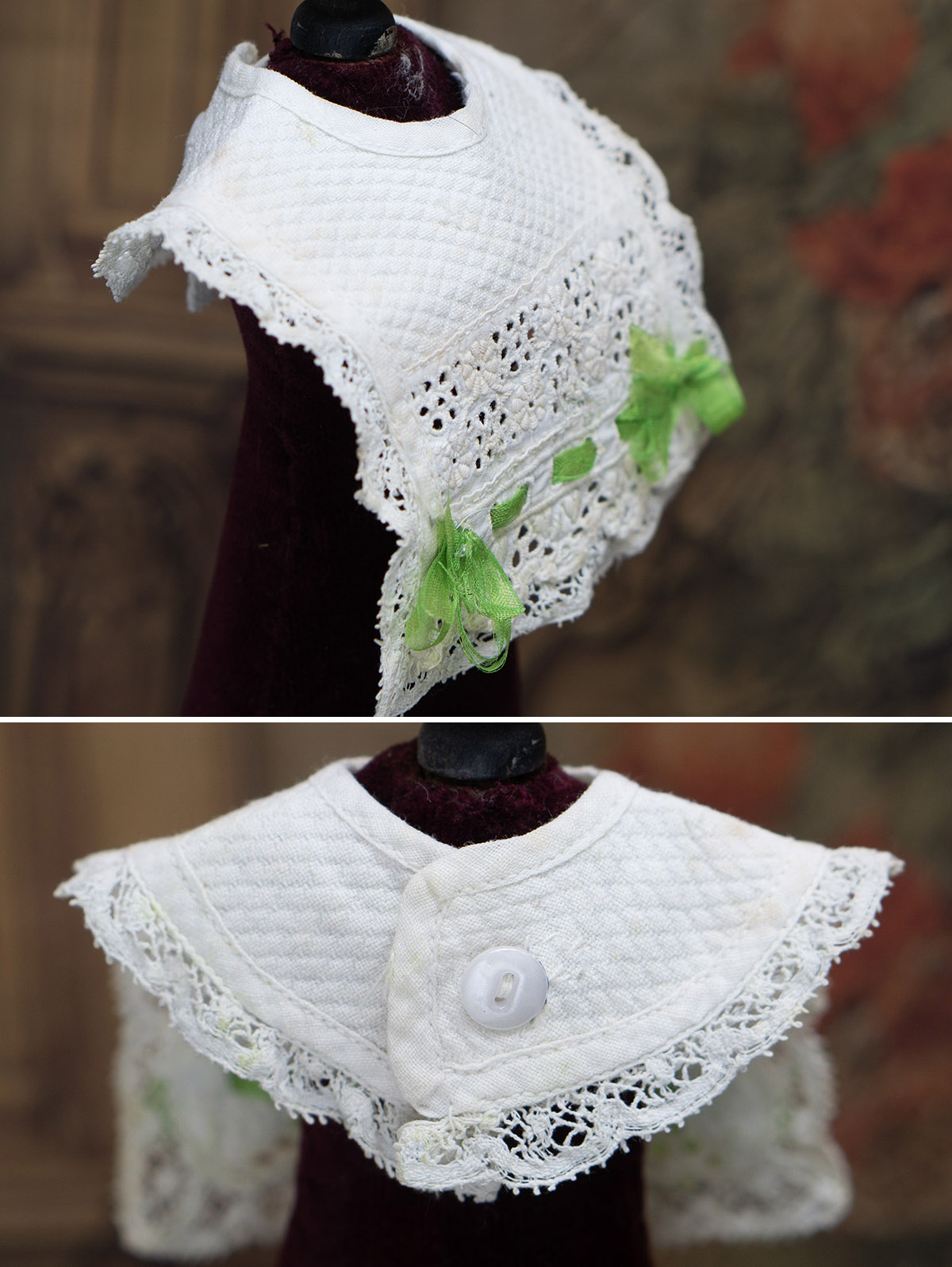 The set includes a delicate bonnet and a finely made piqué plastron.
