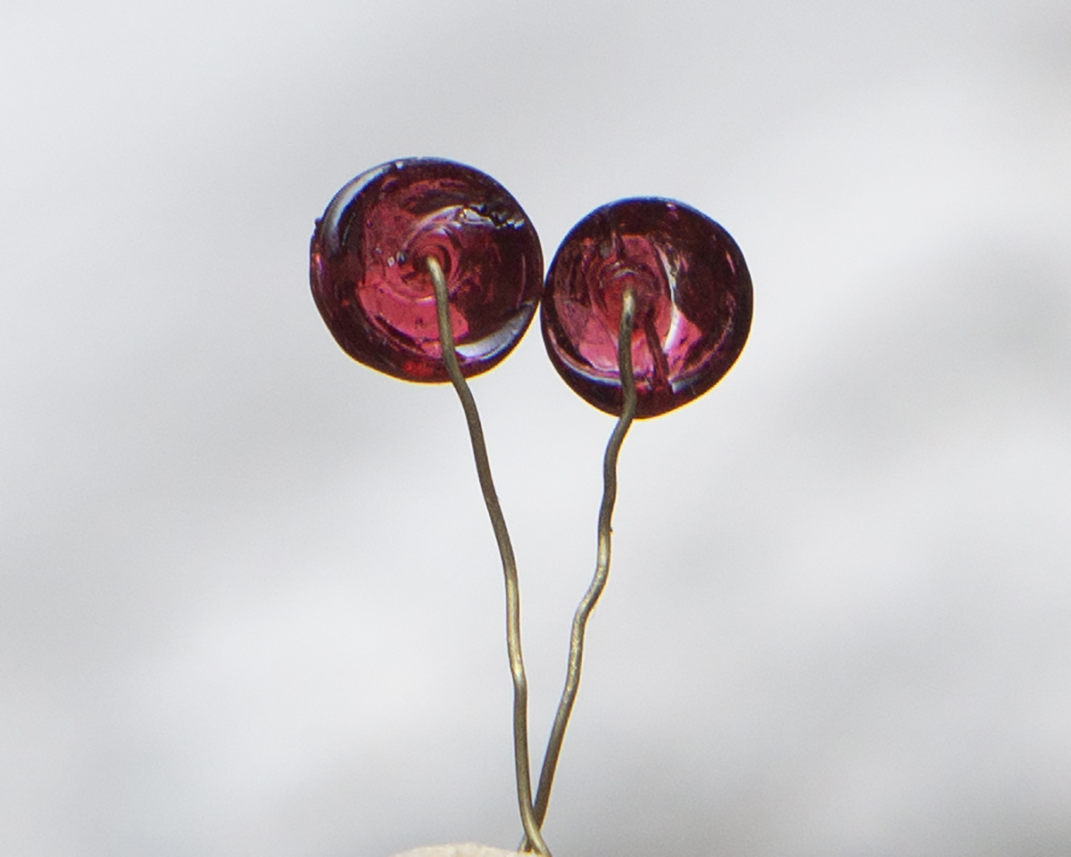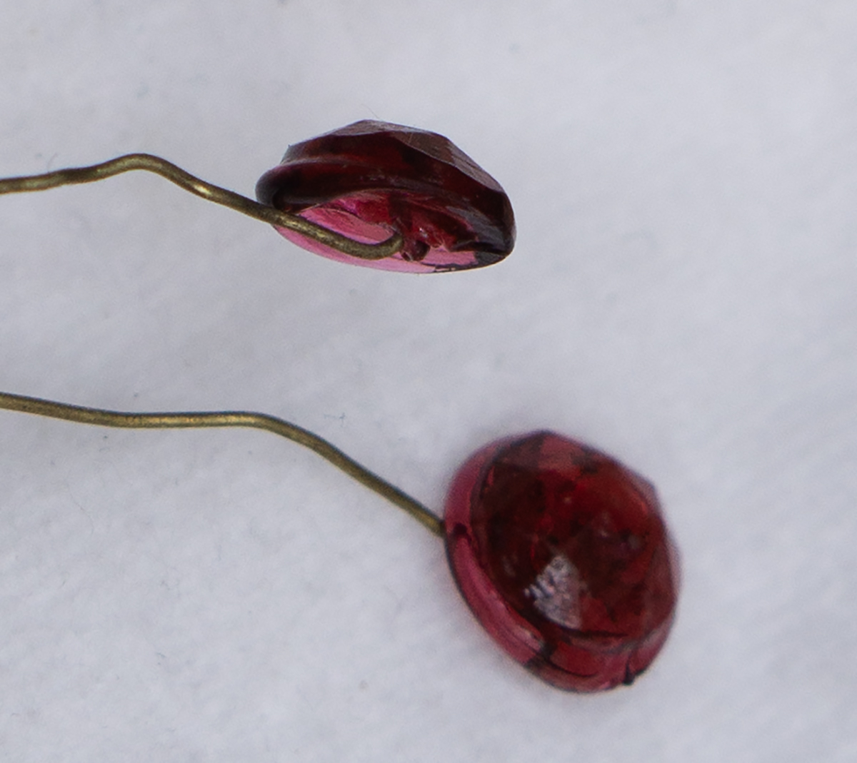 Beautiful for Jumeau bebe doll. 100% antique original Jumeau factory pair of red glass earrings XIXth century with the flat back faceted.