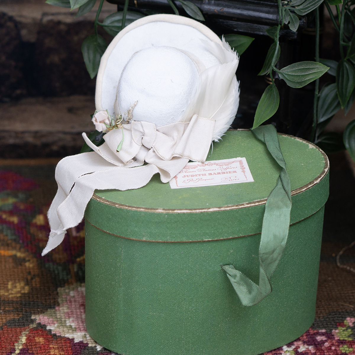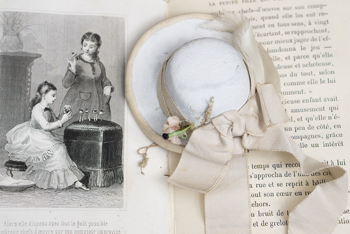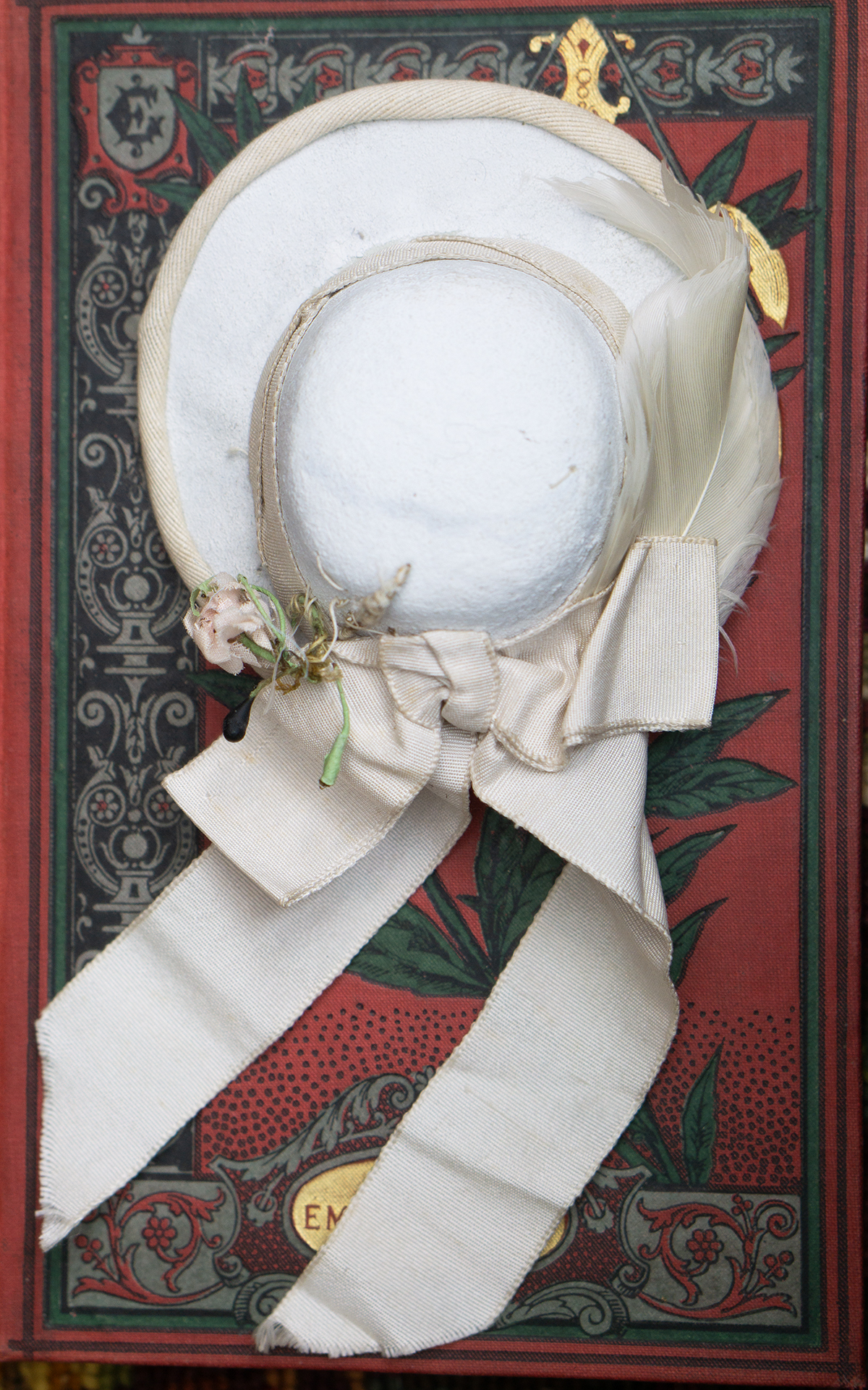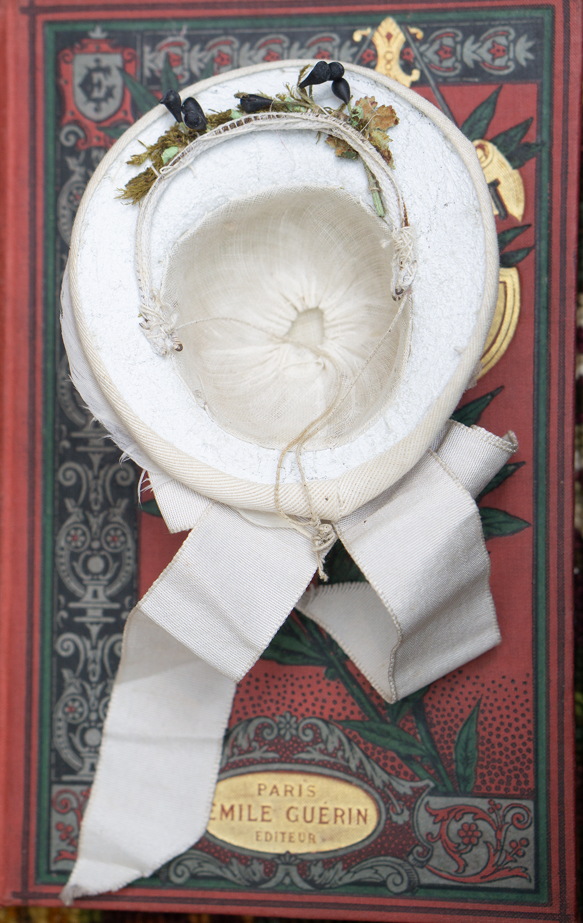 The hat in original green box with green silk handle. The box has original label by Judith Barbier, Paris. Excellent condition. This elegant hat designed for 15"-17" fashion doll. French, circa 1870. Measures: The hat 3 1/2 (9cm) height, 2" (5 cm) wide inside. The box 3 1/2 (9cm) height, 5 1/4" x 3 3/4" (13 cm x 9.5cm). International shipping cost 45 USD. ------------------------------------ I DO A LAYAWAY NO STATE SALES TAX! Thanks for your visit to Respectfulbear doll shop!